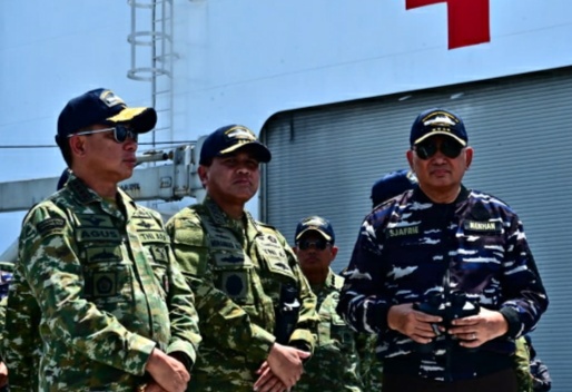 Panglima TNI Jenderal Agus Subiyanto bersama Menteri Pertahanan Sjafrie Sjamsoeddin memantau langsung Latihan Operasi Laut Gabungan (Latopslagab) yang melibatkan kekuatan penuh matra laut dan udara.